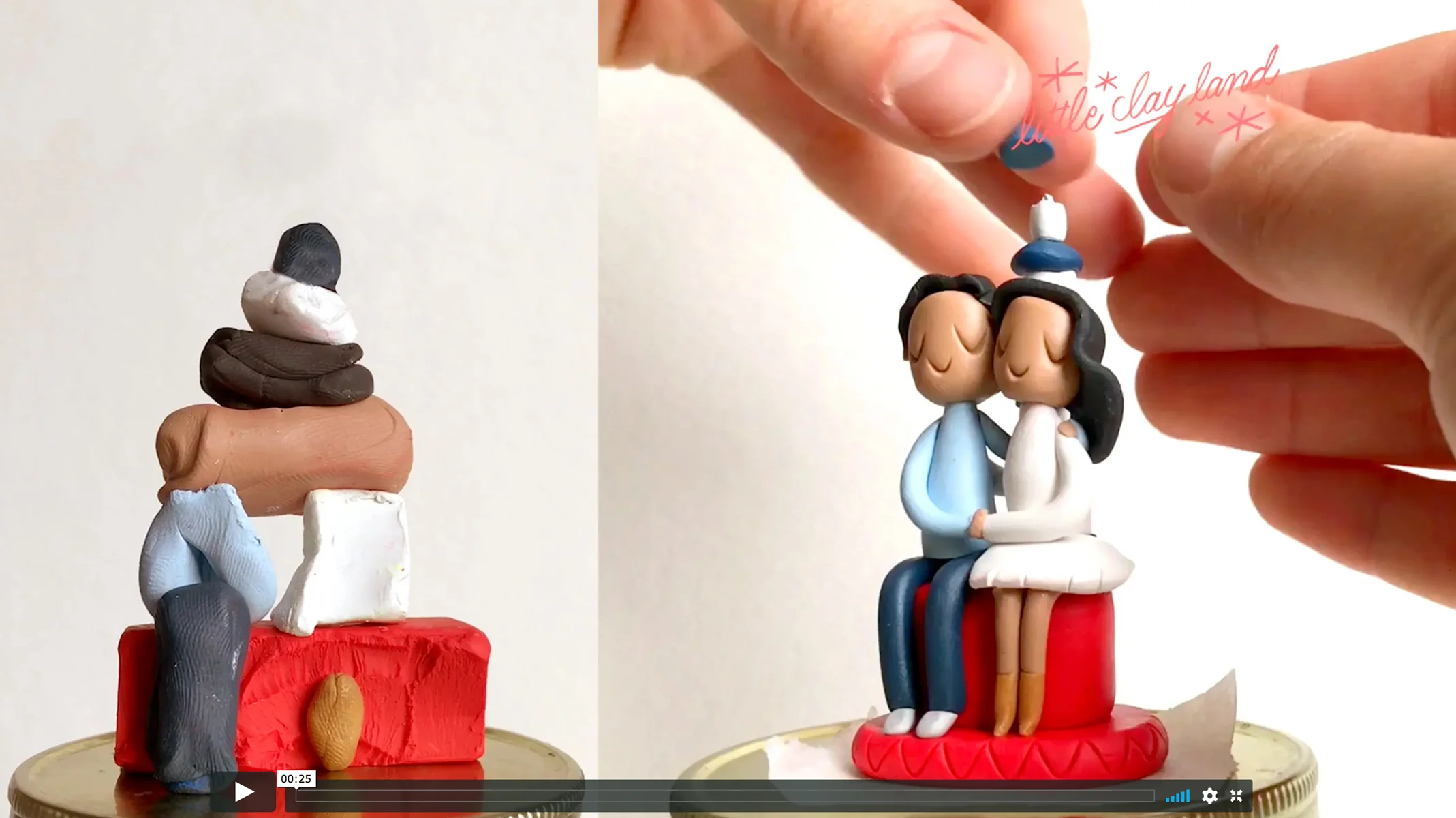 I’m a clay-loving girl in a clay world! At eight years old, I started making miniatures from polymer clay - tiny food, animals, people, fairies - if I could imagine it, I could make it! As I got older, my work as a painter and illustrator took my focus, but I never forgot my love of tiny things. Clay and I were reunited a few years ago, when I started to make little clay portraits as gifts for my friends who were getting married and having kids. As I began posting them online for fun, people wanted to buy them, and I was soon selling clay illustrations and custom clay portraits as Little Clay Land. I think everyone has that same little eight-year-old kid living somewhere inside, and Little Clay Land is where I go to let her out!